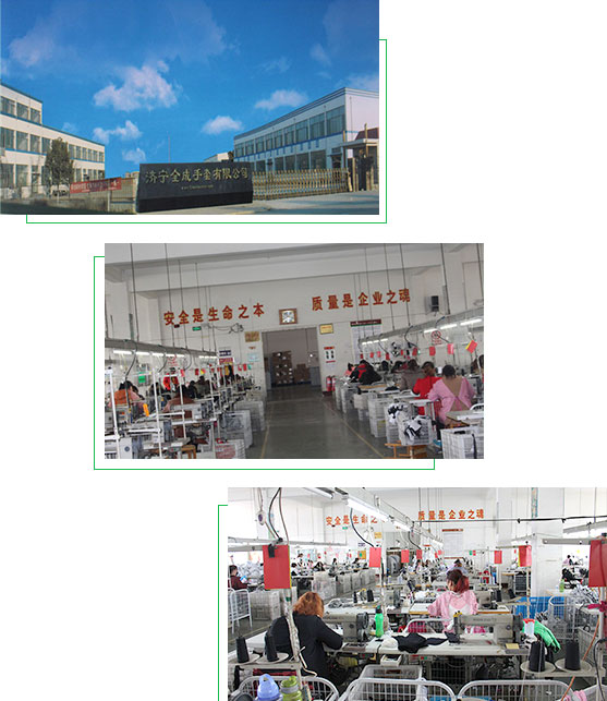 工廠始建于1999年9月,總投資8500萬人民幣,占地面積120畝,車間建筑面積53000平方米,倉庫8500平方米,現有員工960名,各種機器設備985臺,15臺160頭刺繡機,3臺多功能電腦車,年生產主導產品手套360萬雙,是中國海關AA 類企業(yè),是嘉祥縣手套協(xié)會會長單位。